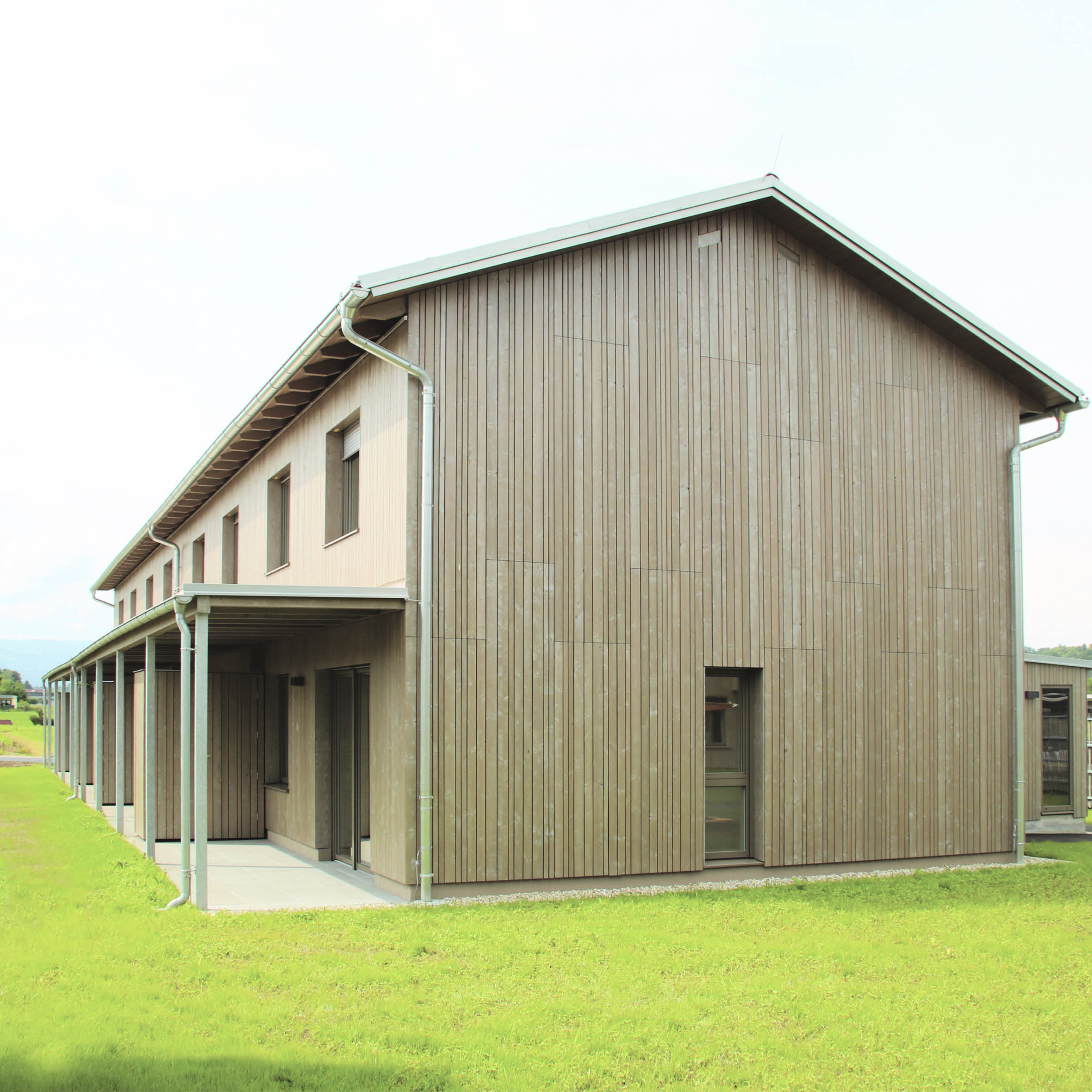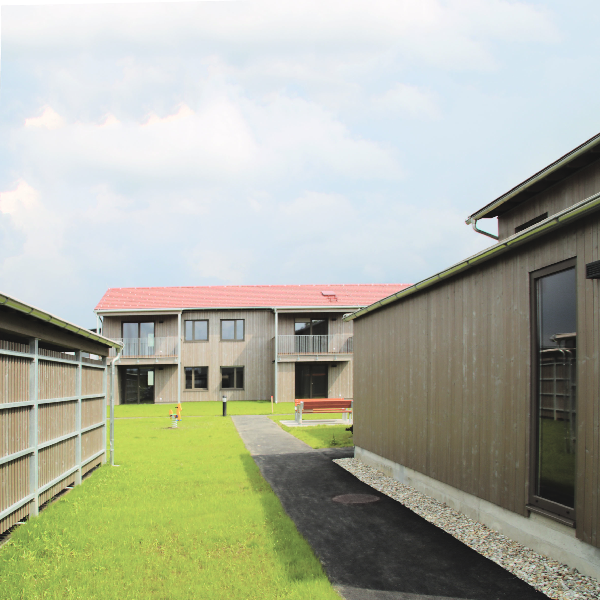 Dem Projekt ist es gelungen, eine Geschoßbausiedlung (3 Gebäude, 14 Wohnungen) in Holzmassivbauweise zu schaffen, die sich in ihrer Maßstäblichkeit in die dörfliche Struktur einfügt.