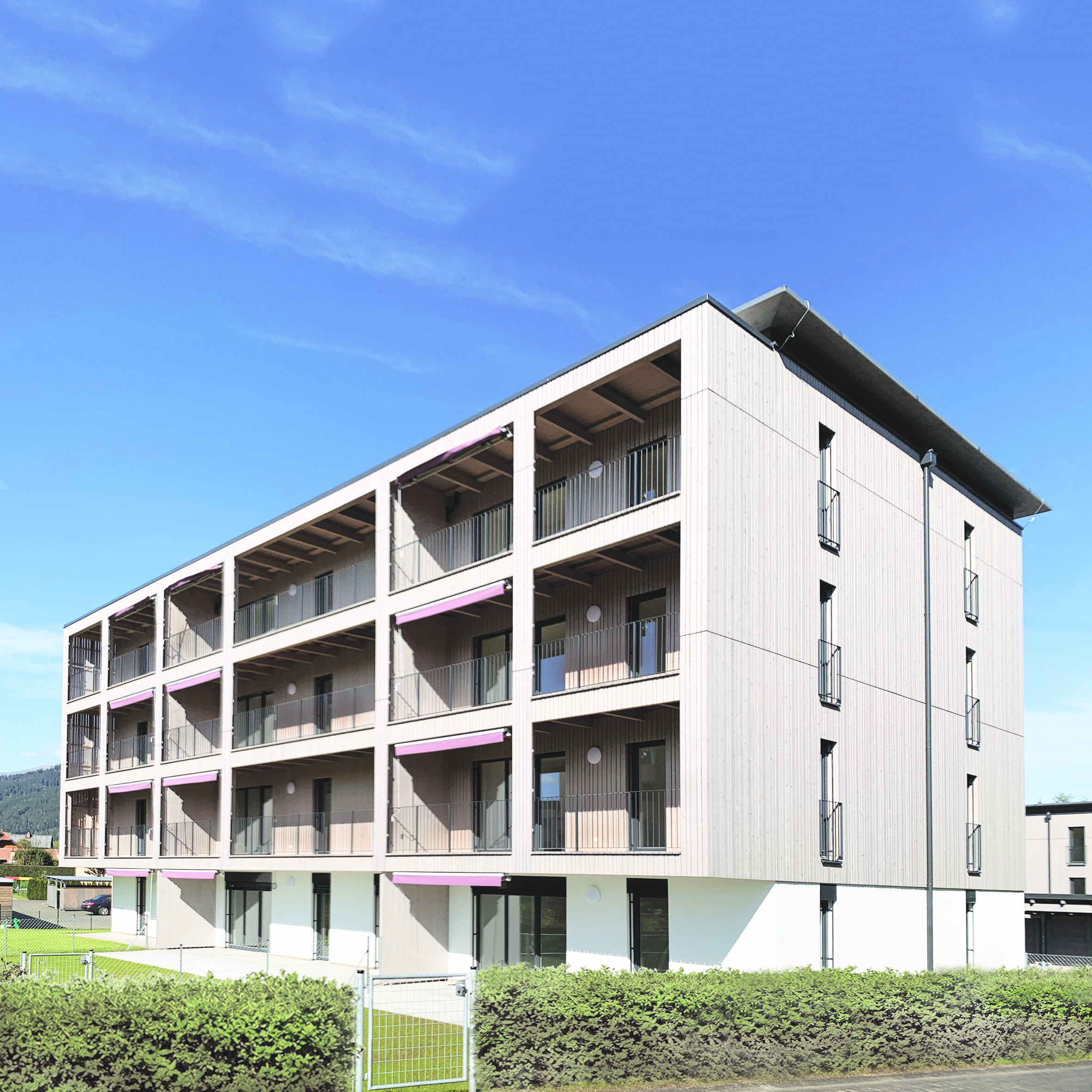 Ein dreigeschossiges und ein viergeschossiges Wohnhaus bilden das Ensemble dieses modernen Wohnbauprojekts. Die Erdgeschosse werden in massiver Bauweise errichtet, während die darüberliegenden Geschosse als nachhaltige Holzkonstruktionen ausgeführt sind. Beide Gebäude verfügen über Aufzüge, sämtliche Wohnungen sind barrierefrei gestaltet.<br>