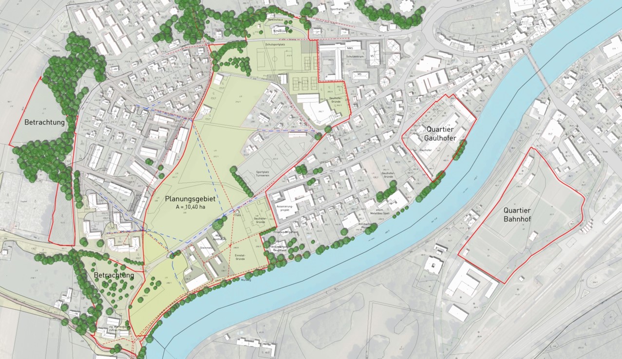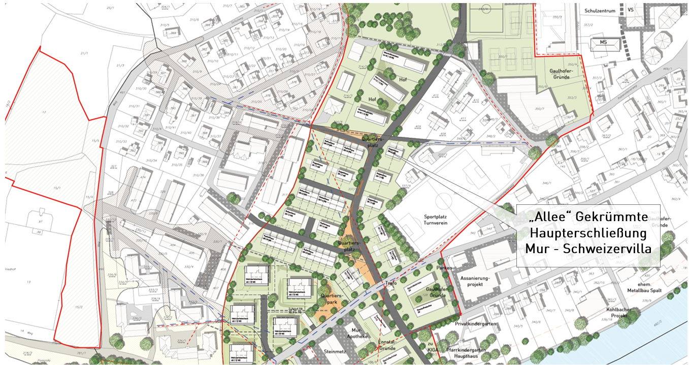 Die Grundstücke 331/1, 335, 336 und 337/1 der KG Frohnleiten sollen als Aufschließungsgebiet für Allgemeines Wohngebiet festgelegt werden.