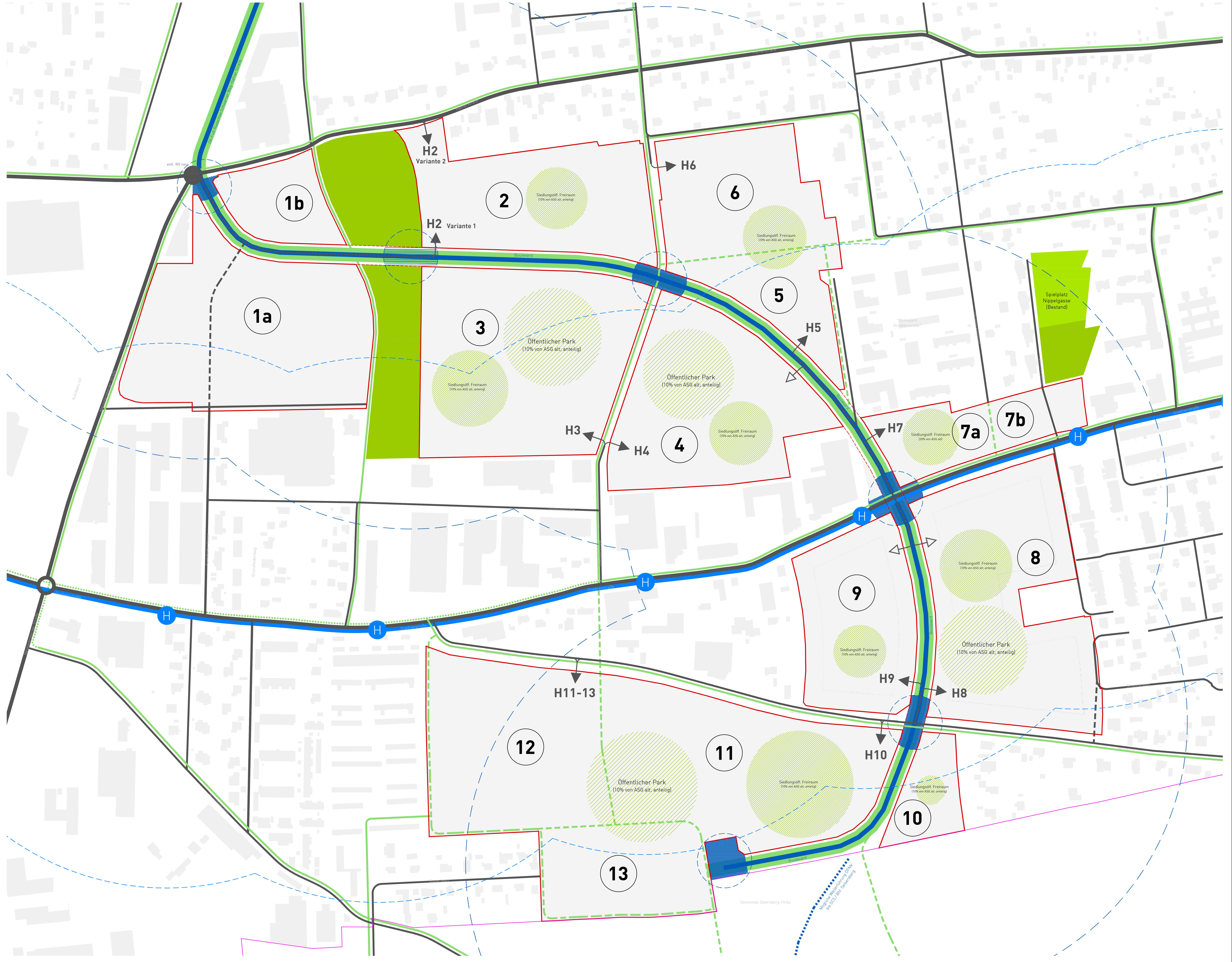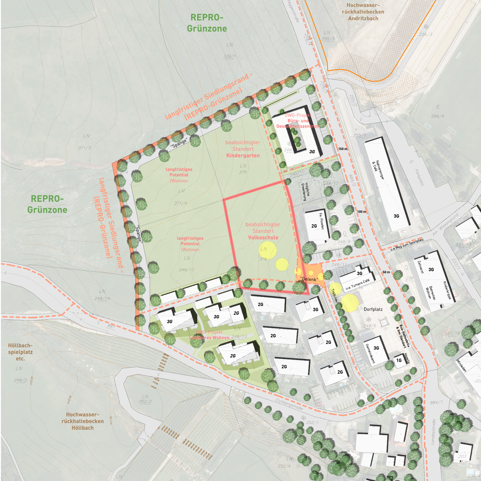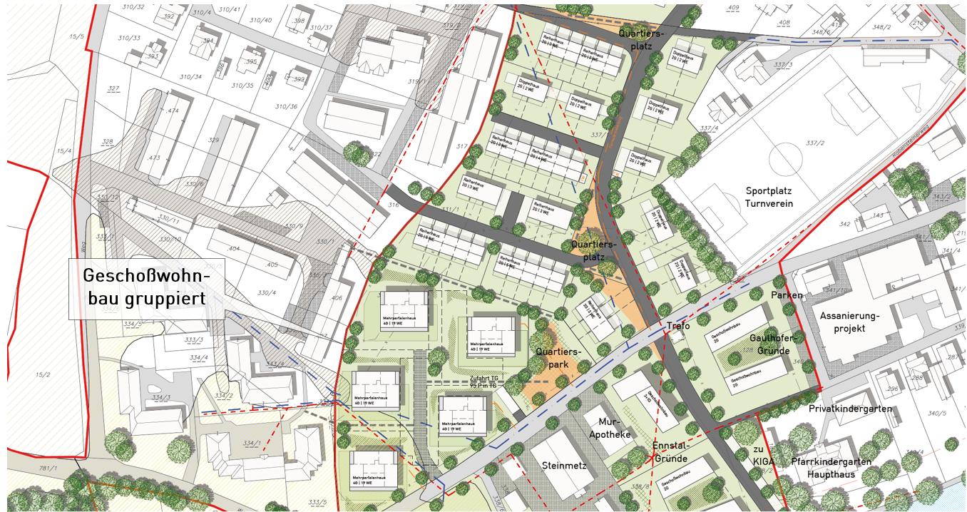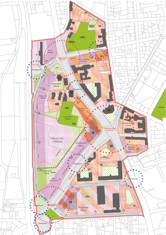 Unter Masterplänen verstehen wir bei Interplan interdisziplinär aufgesetzte, informelle strategische Planungsinstrumente, die als Grundlage für die räumliche Entwicklung auf allen Planungsebenen (Örtliches Entwicklungskonzept, Flächenwidmungsplan, Bebauungsplan) dienen können. Auf Basis eingehender Analysen wird üblicherweise ein funktionales Konzept erarbeitet, aus diesem wird ein Grün- und Freiraumkonzept sowie ein Mobilitätskonzept entwickelt. In weitere Folge wird in einem iterativen Verfahren ein mit Freiraum und Mobilität abgestimmtes städtebauliches Baumassenkonzept erarbeitet. Nach Abgleich aller Randbedingungen wird daraus ein zusammenfassendes städtebauliches Gestaltungskonzept destilliert, welches als Grundlage für die Flächenwidmung und die Bebauungsplanung dient. Aufgrund des informellen Charakters sind Masterpläne auch partizipativen Prozessen zugänglich und können über längere Zeitachsen fortgeführt und jeweils an neue Ansprüche angepasst werden.