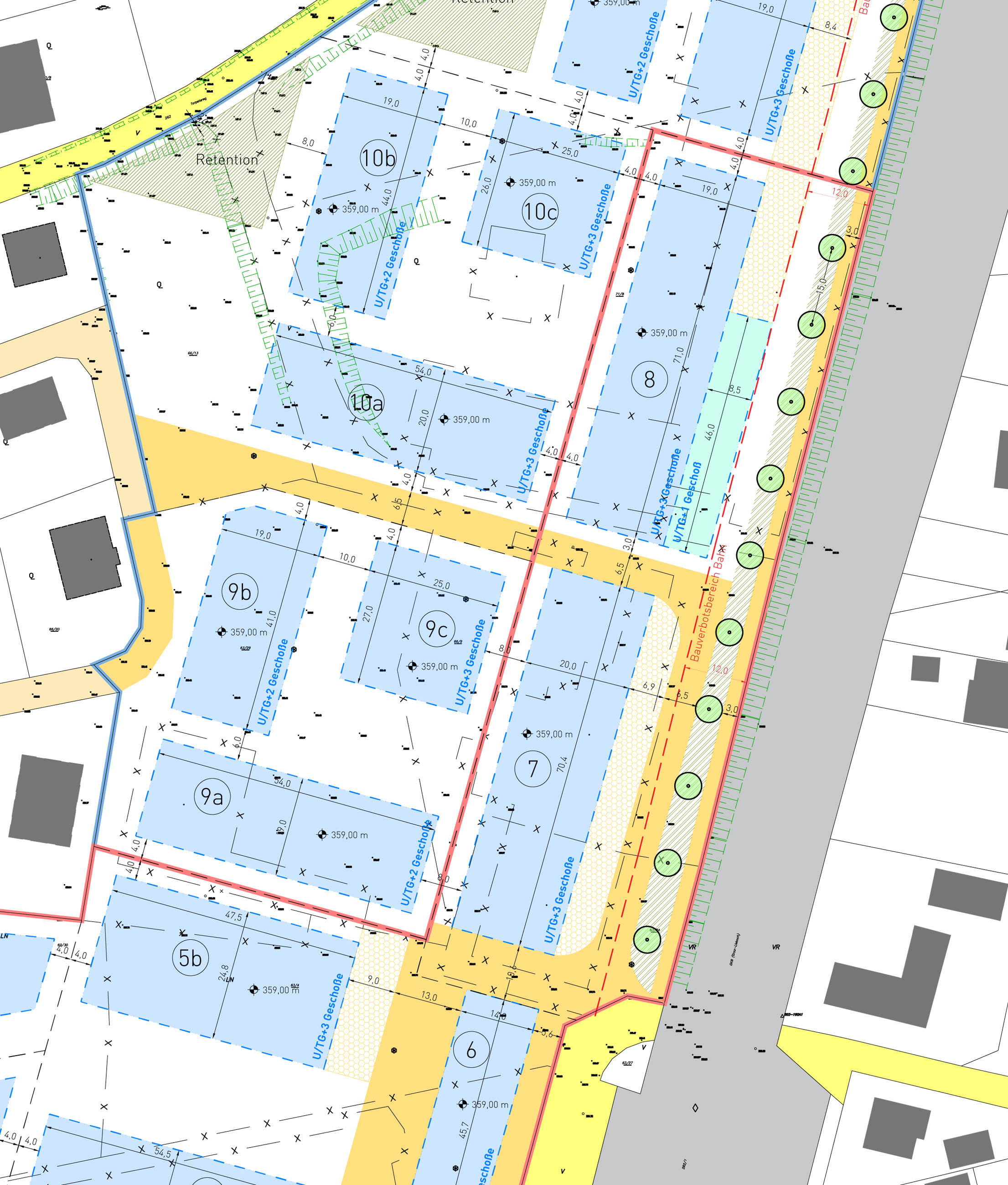 Dabei wird ausgehend von äußeren Randbedingungen und Einschränkungen wie Einordnung in den Gesamtraum, Topografie, naturräumliche Gefährdungen, Sicherstellung von Flächen für Erschließungen (Abtretungen für Straßen und Radwege) eine dem städtebaulichen Maßstab entsprechende bauliche Gestaltung und volumetrische Ausbildung künftiger Bauwerke entwickelt. Zur klimafitten Eingliederung neuer Vorhaben werden Vorgaben zur Sicherstellung und Gestaltung von unversiegelten und bepflanzten Freiflächen (Alleen, begrünte Vorfelder, Entwässerungsflächen etc.) getroffen. Bei der Erstellung von Bebauungsplänen ist neben den Kenntnissen im Bereich der Raumordnung die fundierte städtebauliche und architektonische Kompetenz von entscheidender Bedeutung.